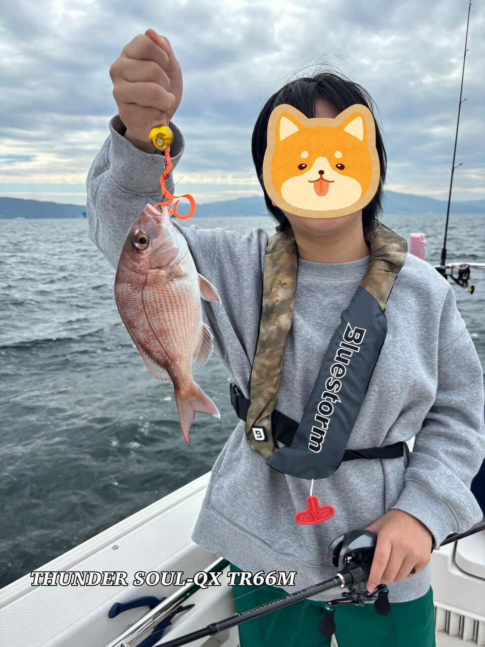 娘の隣で、キャスティングタイラバで真鯛を釣ってる私を見て、次はスピニングを使って釣りたいと言っていました(^^♪。
