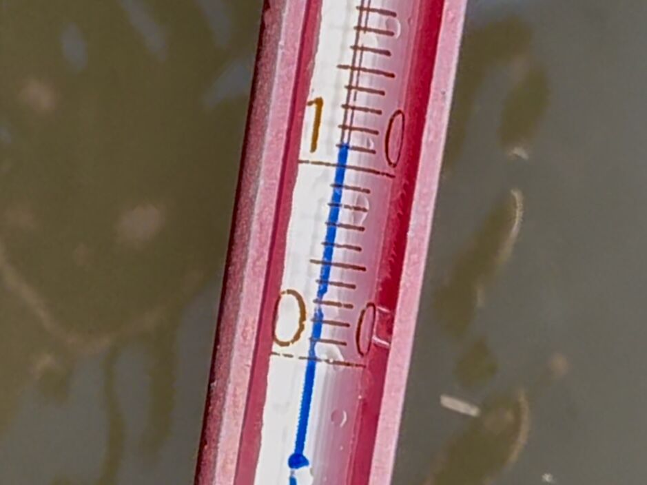 直前まで雪が降っていたため、気温上昇による雪代=水温低下が心配だったが、ウェーダー越しの感覚ではそこまで冷たくなく、計ってみると11℃とむしろ好条件。