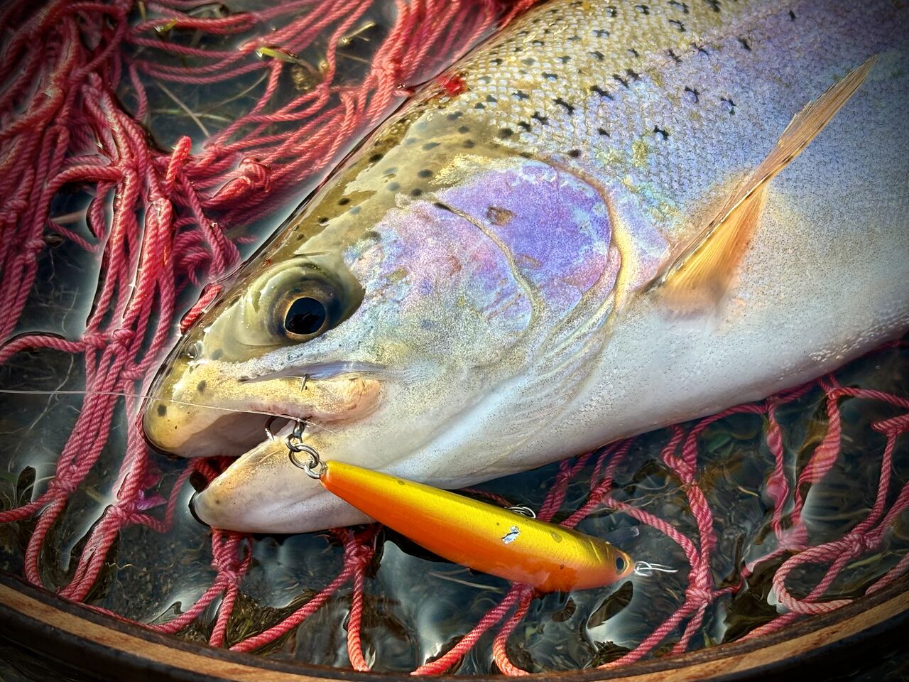 「もう居らんやろ!」とダメ元でのバラシ直後のキャストに、この日4尾目のレインボーがヒットしたのだ。