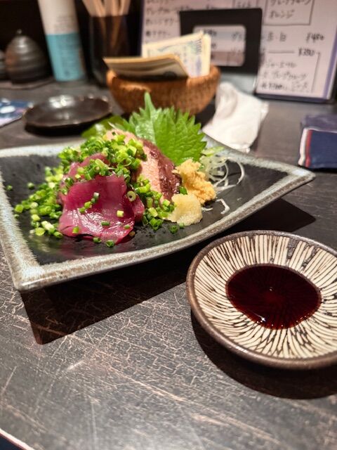 数カ所目の反応でエサ釣りの方がカツオを釣り上げた。