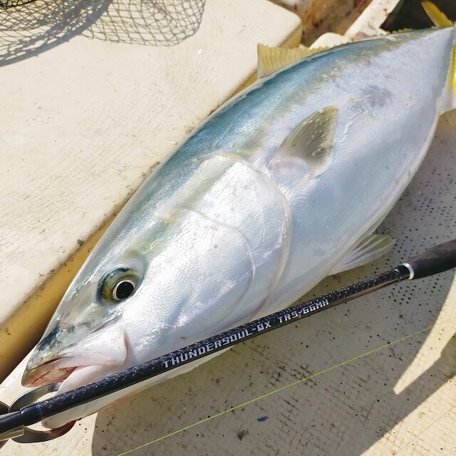 TRS-66MHのバットは問題なくどっしりと耐え、鰤をしっかりと浮かせてきてくれ、無事に6キロクラスのブリを釣り上げることが出来ました。